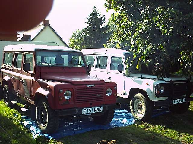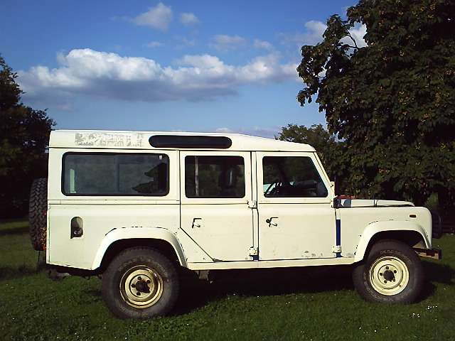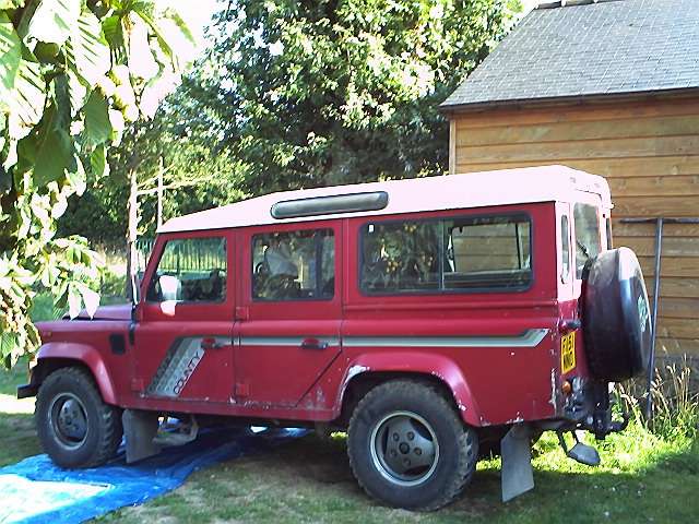 Aout 2009 Retour de vacances et nouvelles envies... Cette passion du Suzuki en particulier, du 4x4 en général, nous amène aujourd hui à nous tourner vers un nouveau genre de véhicule, tout aussi rustique, mais qui m emmènera sur des voyages au long cours, Pour ce faire, nous avons donc choisi un land rover, un defender 110 sw. Nous choisissons 2 véhicules, un land 110 2.5D atmosphérique (67cv, c est un peu limite) la boite lt77 a un problème de syncro de marche arrière, mais la carrosserie de véhicule est en bon etat. Le deuxième véhicule est anglais ...une attirance pour les véhicules anglais!!!! (cf un british en bretage), moteur 200TDI, 119cv, une horloge..., chassis et caisse en mauvais etat... Le jeu du shaker peut donc commencer, démontage des 2 véhicules, on garde le meilleur, mise a nu et décapage d'un des 2 chassis, rénovation de tous les éléments carrosserie alu et bientôt.....remontage.... A très bientot pour l'evolution des travaux......ici