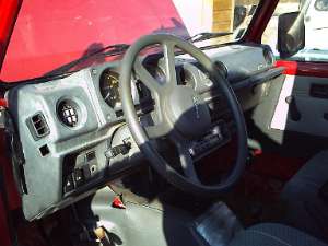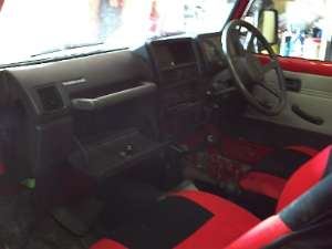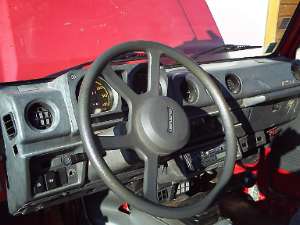 Transformation d'un suz british en conduite française...base suzuki samurai, 1324cm3 pas une mince affaire....3 mois de déboires administratif, de controles à la DRIRE (eh oui pas simple de franciser un véhicule étranger... quelque soit le coté du volant...pour obtenir une CG aujourd hui (peu importe le pays d'acquisition et malgré les certificats européens...!!!!) La suite est mécanique... et carrosserie!!! Le depart: l'intérieur le bon gout british...avec de superbes housses..... l'implantation du maitre cylindre de frein, etc.... l'emplacement de l ancien boitier de direction et le futur emplacement.....